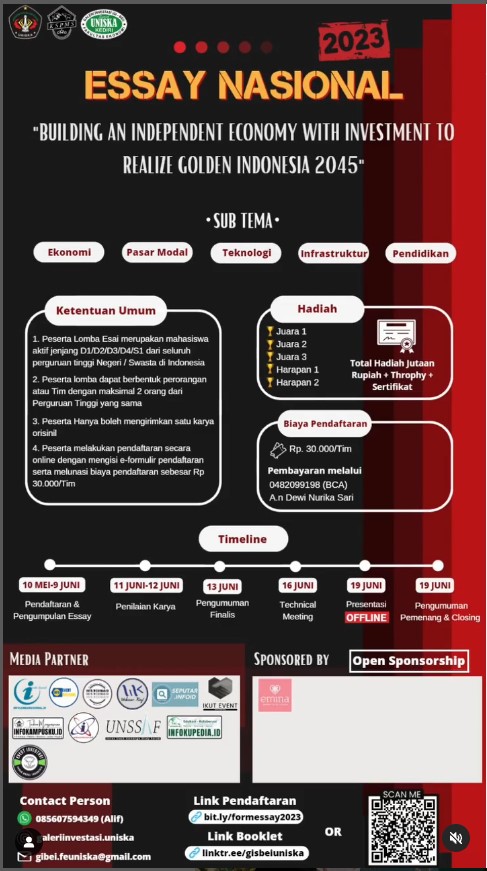 rangka memperingati anniversary GIS BEI UNISKA yang ke- 7 tahun, bahwa GIS BEI UNISKA Kediri bermaksud untuk menyelenggarakan lomba Essay dengan tema: