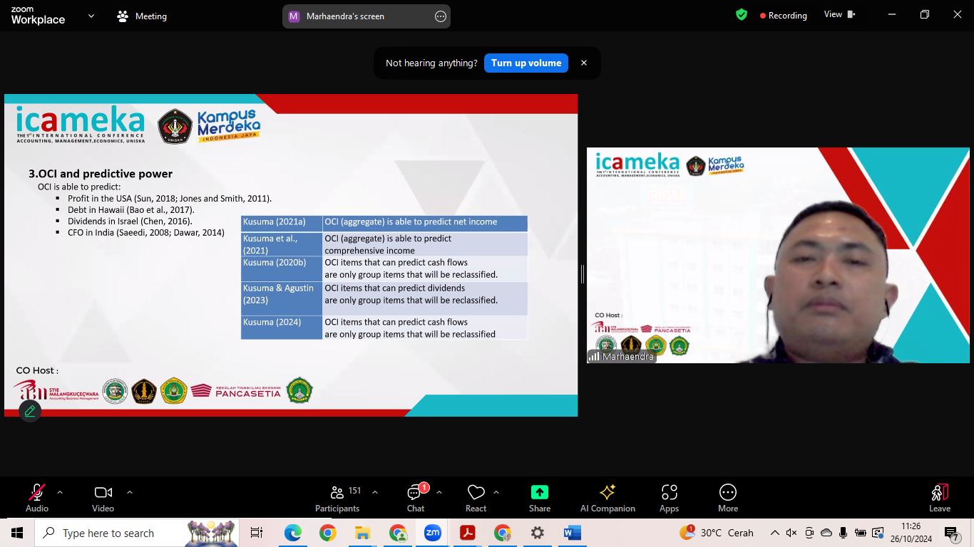 Dengan tema “Menguatkan Peran Akuntansi, Manajemen, dan Ekonomi dalam Kesejahteraan Berkelanjutan,” ICAMEKA 2024 mengajak para peserta untuk menggali solusi inovatif dalam menciptakan ekonomi yang tidak hanya menguntungkan, tetapi juga ramah lingkungan. Mulai dari topik tentang integritas korporasi hingga energi mikroalga, konferensi ini berhasil memberikan wawasan baru yang relevan bagi masa depan.
