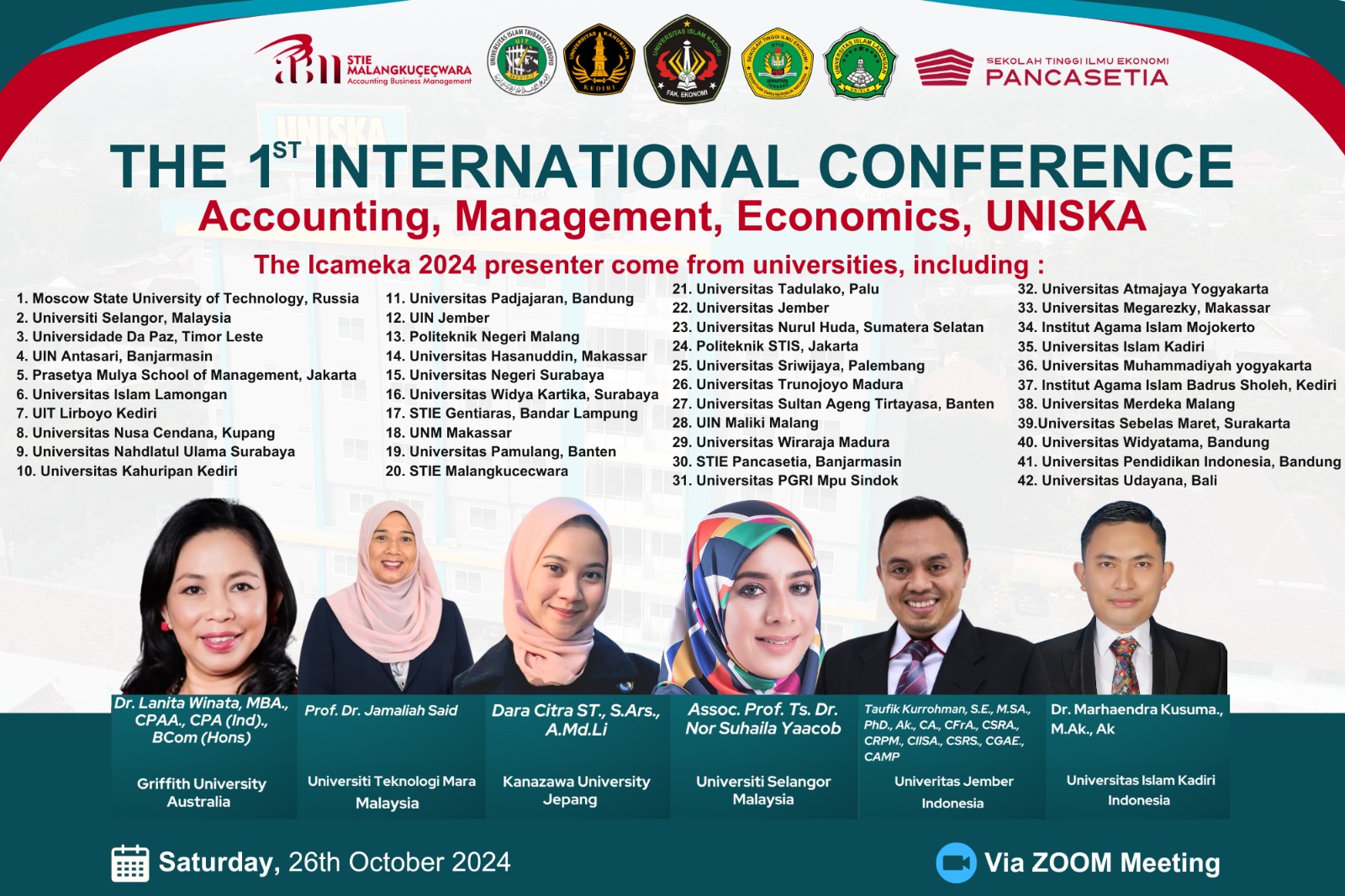 Kediri, Jawa Timur – Universitas Islam Kadiri (UNISKA) baru saja sukses menggelar International Conference on Accounting, Management, and Economics (ICAMEKA) 2024 pada 26 Oktober 2024. Konferensi internasional ini mempertemukan ratusan akademisi, praktisi, dan pemimpin pemikiran di bidang akuntansi, manajemen, dan ekonomi untuk menjawab tantangan ekonomi berkelanjutan.
