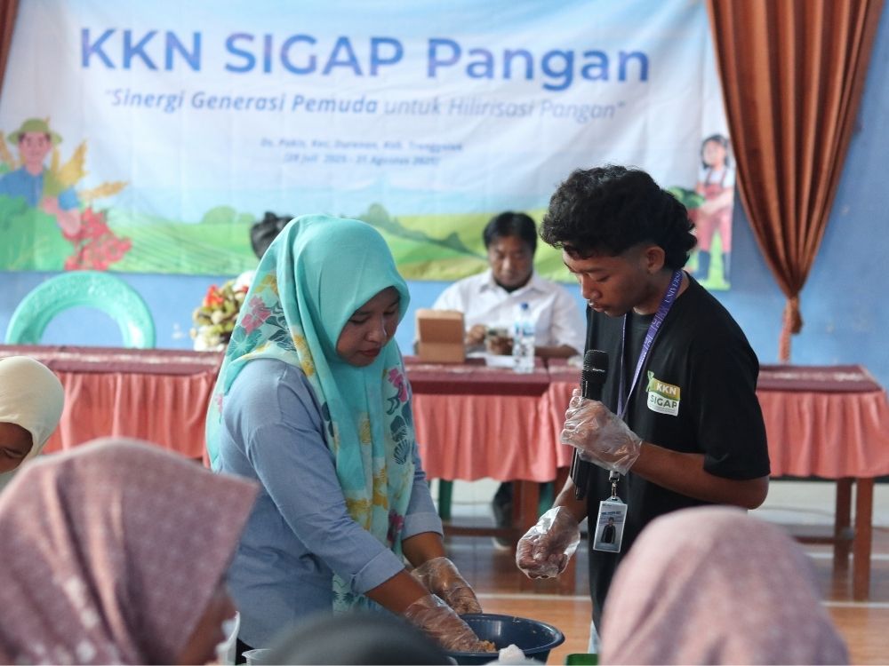 Sebagai pendampingan berkelanjutan, mahasiswa juga membagikan lembar pedoman berisi resep, alat, bahan, dan tata cara pengolahan, sehingga warga dapat menyimpan, mencontoh, dan mengembangkan inovasi tersebut di rumah.