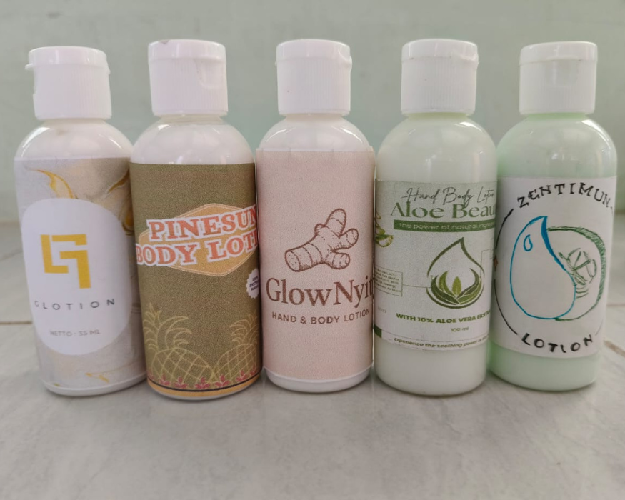 Sebanyak 35 siswa dari jurusan Teknik Kimia Industri antusias mengikuti pelatihan yang terbagi dalam dua sesi utama, yakni pelatihan pembuatan hand and body lotion dari bahan alami seperti mentimun, lidah buaya, jahe, nanas, dan kunyit putih, serta pelatihan pemasaran produk. Tak hanya itu, kegiatan ini juga menjadi bentuk diseminasi hasil riset terdahulu yang dilakukan tim pengabdian, seperti pembuatan lotion dari ekstrak jamur lingzhi, nanas, dan tembakau.