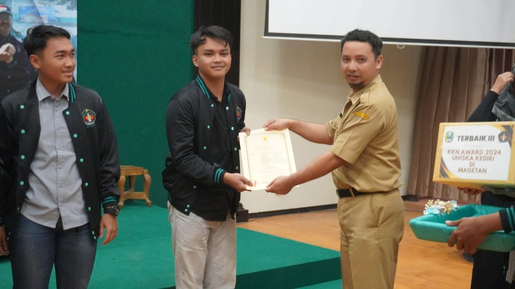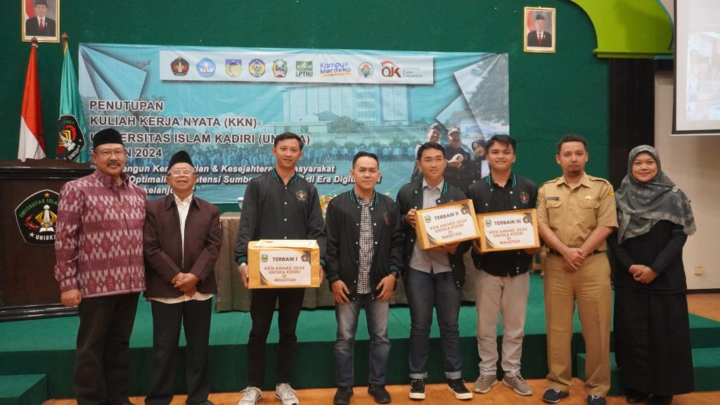 Kegiatan Kuliah Kerja Nyata (KKN) Mahasiswa Universitas Islam Kadiri (Uniska) Kediri, tahun 2024 resmi ditutup pada Senin (2/9/2024) di Aula Uniska Kediri. KKN Uniska 2024 dengan tema “Membangun Kemandirian dan Kesejahteraan Masyarakat Melalui Optimalisasi Potensi Sumber Daya Lokal di Era Digital Secara Berkelanjutan” ditutup langsung oleh Rektor Uniska Kediri, Prof. Dr. H. Bambang Yulianto, M.Pd., acara tersebut juga dihadiri oleh perwakilan dari Pemerintah Daerah Kabupaten Magetan, Kepala BAPEDDA Magetan Noor Majid.
