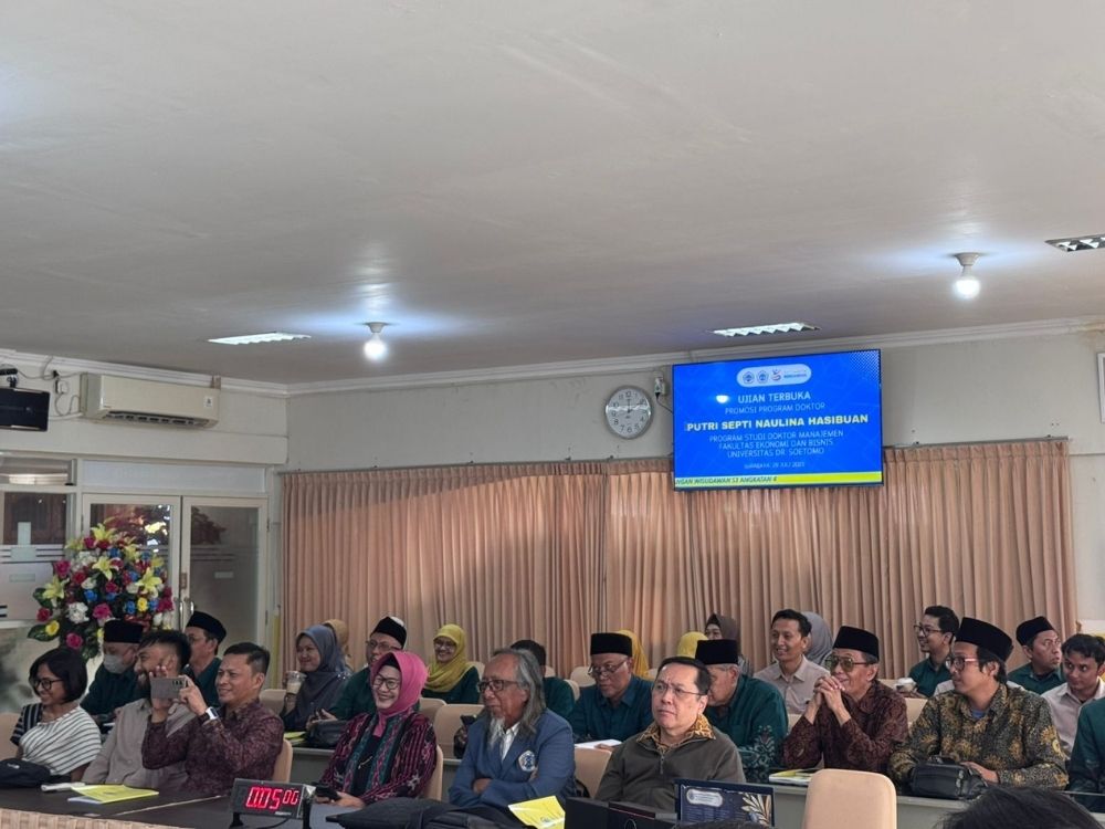 Setelah berbagi cerita tentang rumah tangga akademik yang saling mendukung dan menjalani sidang tertutup bersama pada 18 Juni 2025 lalu, pasangan suami istri Dr. Rinto Harno, S.Mn., M.M. dan Dr. Hj. Putri Septi Naulina, S.E., M.M. mencapai momen bersejarah dalam perjalanan pendidikan mereka: menjalani sidang terbuka doktor pada hari yang sama, Selasa, 29 Juli 2025. Sidang terbuka berlangsung di Gedung H Lantai 4, Fakultas Ekonomi dan Bisnis Universitas Dr. Soetomo (FEB Unitomo) Surabaya. Momen ini tidak hanya menjadi penanda pencapaian akademik, tetapi juga simbol komitmen, ketekunan, dan sinergi dalam membangun rumah tangga sekaligus karier pendidikan.