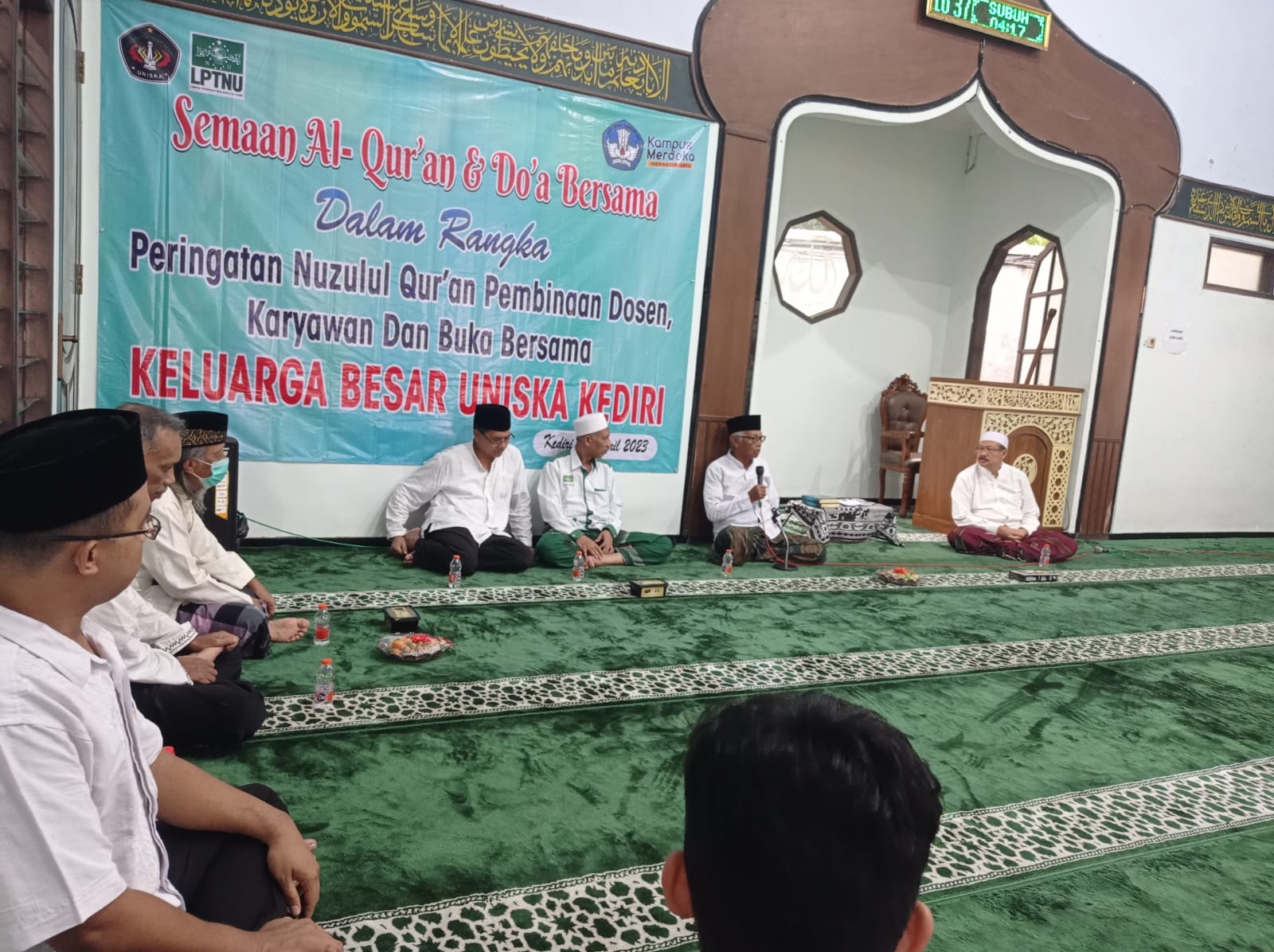 Hari Minggu, Tanggal 16 April 2023 Uniska Kediri mengadakan acara Sema’an Al Qur’an, Do’a Bersama dalam rangka Peringatan Nuzulul Qur’an, Pembinaan Dosen, Karyawan dan Buka Puasa Bersama 1444 H yang dilaksanakan di Masjid Ittihad Uniska.
