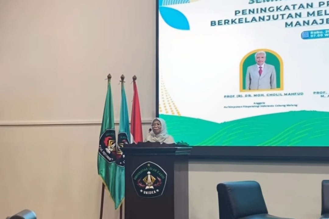 Melengkapi pandangan tersebut, Prof. Lilik Retna Kartikasari menyoroti pentingnya sektor peternakan dalam mendukung ketahanan pangan nasional. Ia menjelaskan bahwa konsumsi protein hewani di Indonesia masih berada di bawah rata-rata global dan regional, sehingga perlu upaya peningkatan nilai tambah produk peternakan. Dalam paparannya, ia menekankan manfaat konsumsi telur dan susu sebagai sumber gizi seimbang, serta menepis kekhawatiran masyarakat terhadap kolesterol berlebih. Selain itu, Prof. Lilik juga membuka peluang bagi mahasiswa Uniska Kediri untuk mengikuti program pertukaran akademik di Fakultas Peternakan Universitas Sebelas Maret sebagai bentuk kolaborasi antarperguruan tinggi.