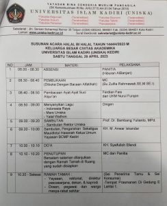Undangan Halal Bi Halal Keluarga Besar Uniska Kediri 2023 April 28, 2023 Posted by: Author Humas UNISKA Kediri Category: Uncategorized Komentar Dinonaktifkan pada Undangan Halal Bi Halal Keluarga Besar Uniska Kediri 2023 Bagikan dengan :
