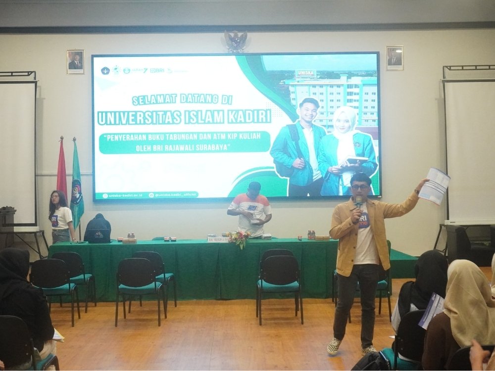 Universitas Islam Kadiri (Uniska) Kediri kembali menunjukkan komitmennya dalam memberikan pelayanan terbaik bagi mahasiswa penerima Kartu Indonesia Pintar (KIP) Kuliah. Bertempat di Aula Gedung E, Uniska Kediri bekerja sama dengan Bank BRI Rajawali Jawa Timur menyelenggarakan acara Penyerahan Buku Tabungan dan ATM KIP Kuliah bagi mahasiswa angkatan 2025, pada Senin, 8 Desember 2025, mulai pukul 11.00 WIB. Sebanyak 210 mahasiswa penerima KIP Kuliah hadir dan mengikuti proses penyerahan secara langsung. Mekanisme tatap muka antara bank dan mahasiswa ini dipilih untuk memastikan keamanan, ketepatan data, serta kelancaran pencairan bantuan pendidikan.