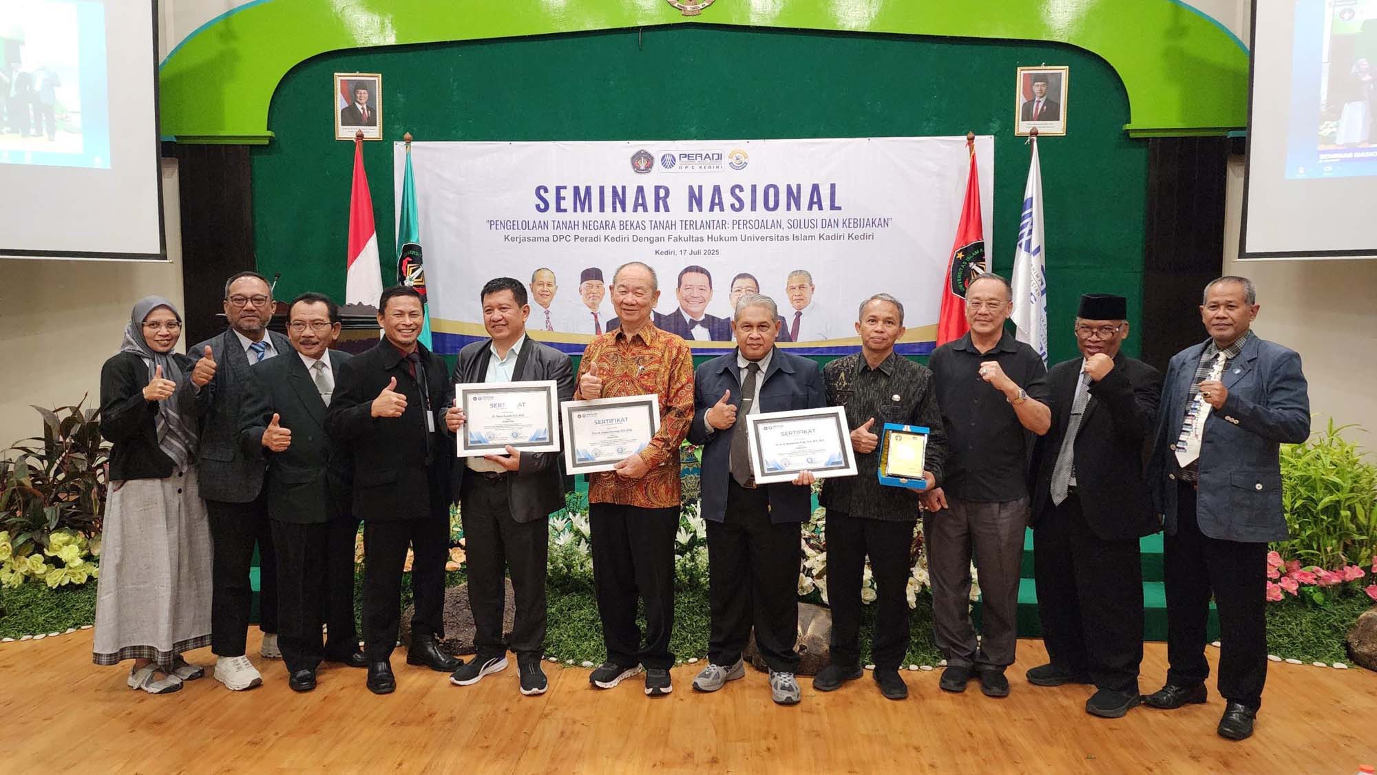 Fakultas Hukum Universitas Islam Kadiri (Uniska) bekerja sama dengan Perhimpunan Advokat Indonesia (PERADI) menyelenggarakan Seminar Nasional bertajuk “Pengelolaan Tanah Negara Bekas Tanah Terlantar” pada Kamis, 17 Juli 2025, bertempat di Aula Gedung E Uniska Kediri. Acara ini dihadiri berbagai pemangku kepentingan, mulai dari akademisi, praktisi hukum, notaris, advokat, mahasiswa, hingga aparatur kelurahan dan kecamatan di wilayah Kediri dan sekitarnya.