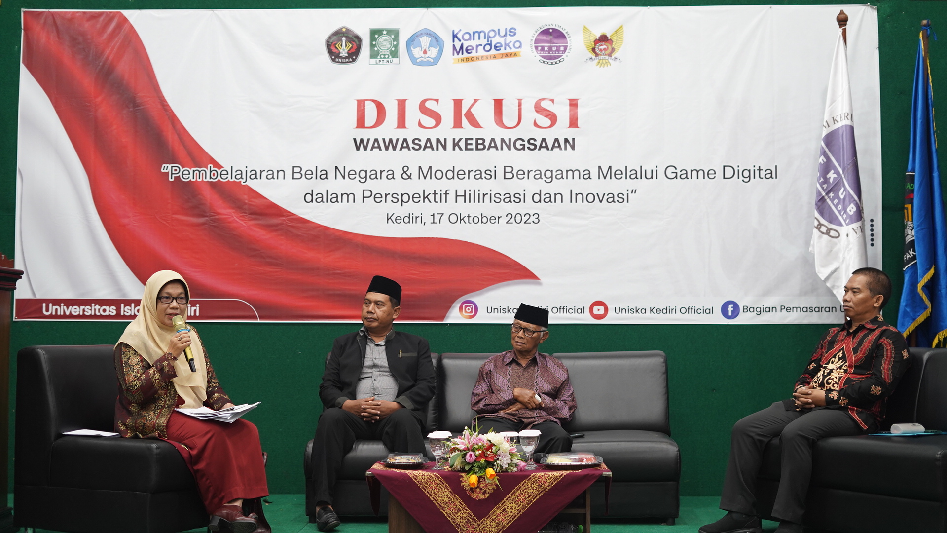 Universitas Islam Kadiri (Uniska) Kediri menyelenggarakan Diskusi Wawasan Kebangsaan dengan tema “Pembelajaran Bela Negara & Moderasi Beragama Melalui Game Digital dalam Prespektif Hilirisasi dan Inovasi”. Kegiatan ini dilaksanakan pada hari Selasa, 17 Oktober 2023, pukul 19.00 – 22.00 WIB, di Auditorium Universitas Islam Kadiri (Uniska) Kediri, Gedung E, Lantai 2, Jl. Sersan Suharmaji No 38, Manisrenggo, Kota Kediri.