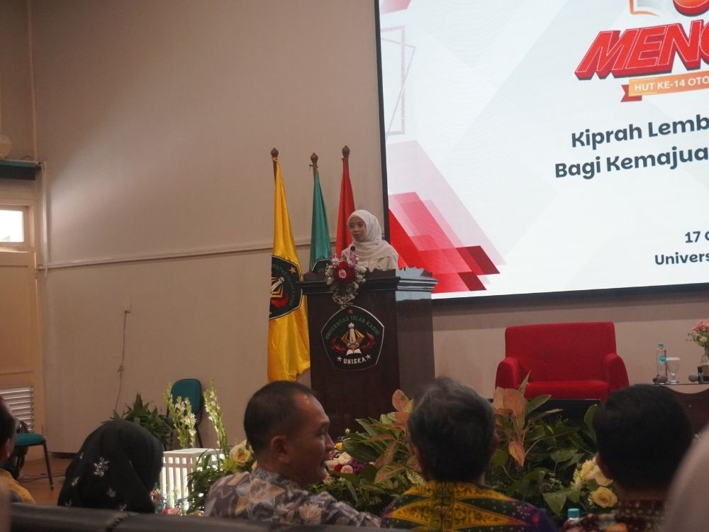 Acara dibuka dengan sambutan dari Dr. Nisa Mutiara, S.Sos., M.Si., Wakil Rektor II Uniska Kediri, yang hadir mewakili Rektor. Dalam sambutannya, Dr. Nisa mengucapkan terima kasih atas kehadiran para pejabat OJK dan menekankan pentingnya kegiatan seperti ini untuk menambah wawasan mahasiswa mengenai dunia keuangan. Ia juga mengajak mahasiswa untuk mengikuti acara dengan serius agar materi yang disampaikan dapat menjadi bekal dalam memahami pengelolaan keuangan pribadi maupun pengembangan usaha.