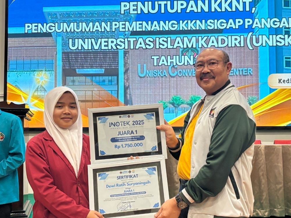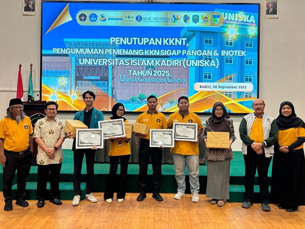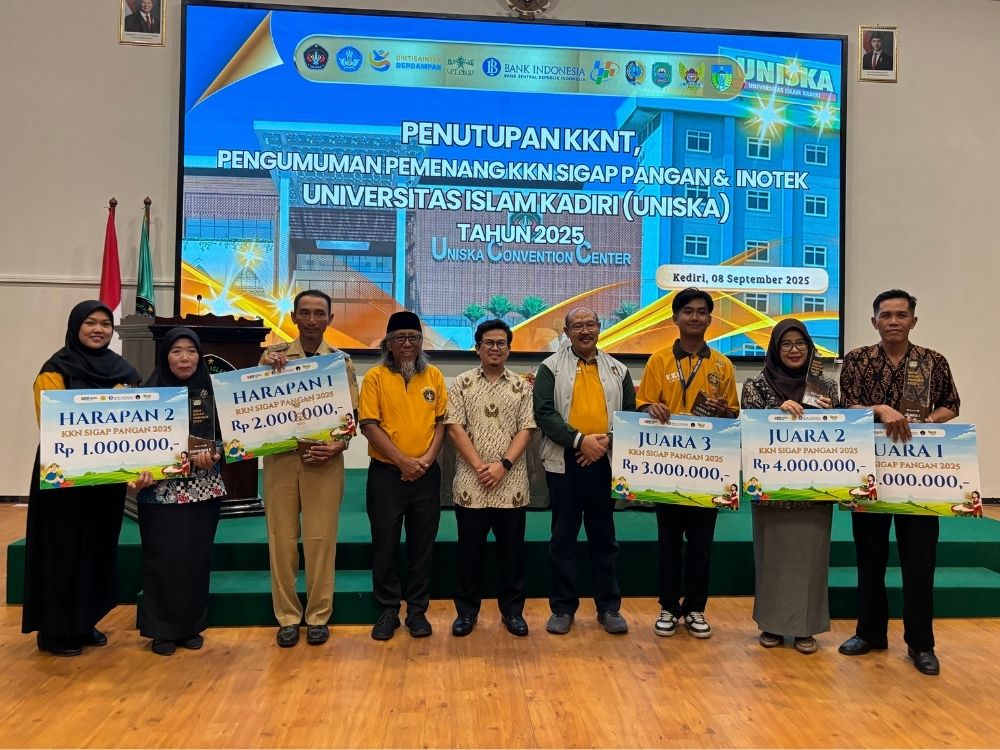 Universitas Islam Kadiri (Uniska) Kediri menggelar acara Penutupan Kuliah Kerja Nyata Tematik (KKNT) 2025. Pada Senin, 8 September 2025, acara berlangsung sejak pukul 13.00 WIB di Aula Gedung E Uniska Kediri, menghadirkan suasana penuh semangat dan kebanggaan. Tidak hanya menjadi penutup kegiatan KKN mahasiswa, momentum ini juga dirangkaikan dengan dua agenda penting yaitu pengumuman pemenang lomba SIGAP Pangan yang digagas bersama Bank Indonesia Kediri, serta INOTEK 2025 yang diinisiasi Lembaga Penelitian dan Pengabdian kepada Masyarakat (LPPM) Uniska Kediri.